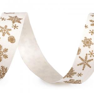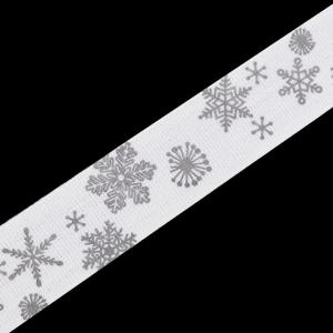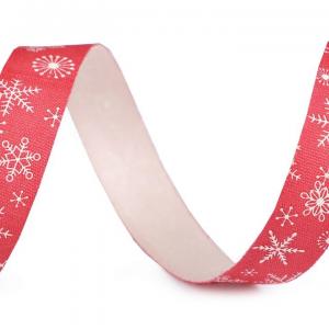 Ruban Noel Blanc Etoile Blanche sur Fond Rouge 15mm