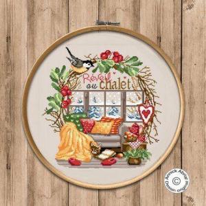Fiche ou Kit de Point de Croix - Réveil au chalet - Annick Abrial