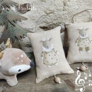 Coussin musical petits rennes des neiges Le Lin d'Isabelle
