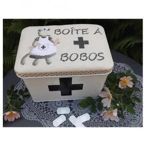Fiche de Broderie Boite à Pharmacie et Boite à Pansements Chaton Infirmière Le Lin d'Isabelle