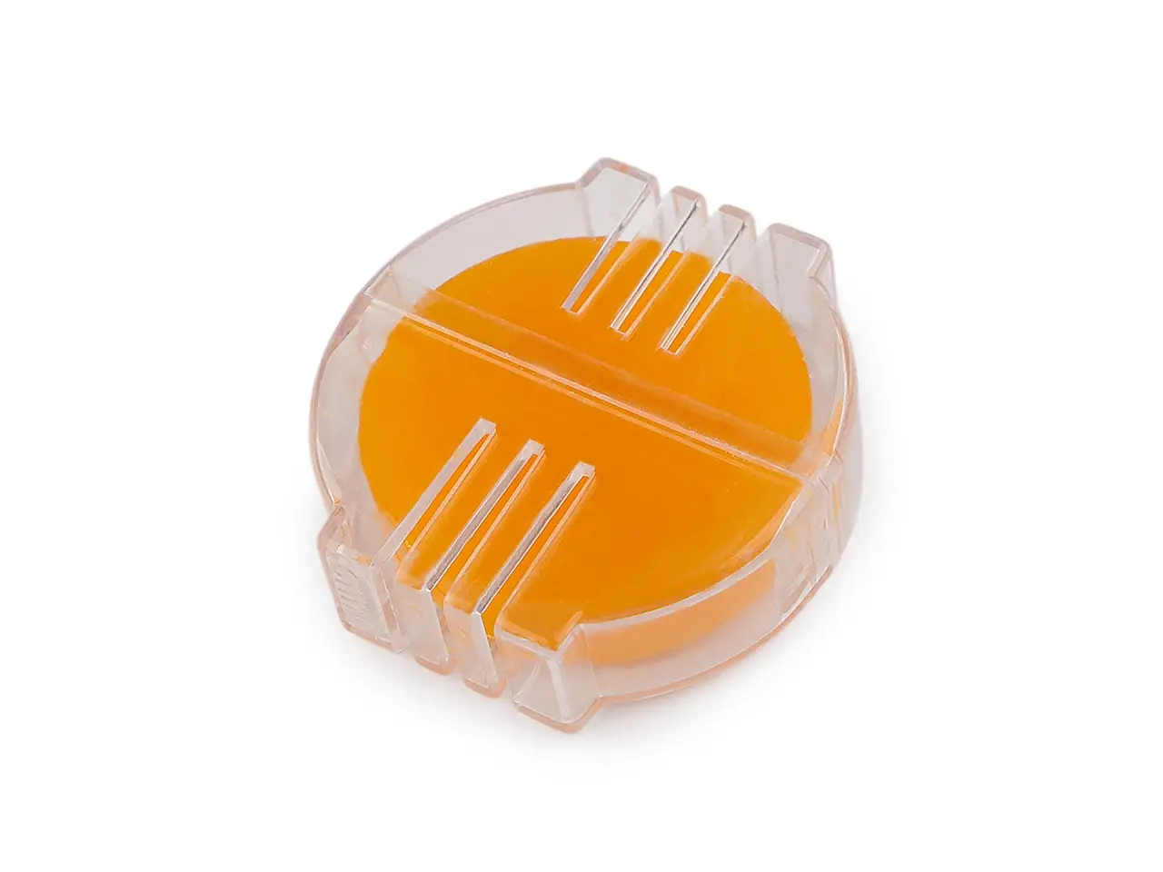 Elle facilite le passage du fil dans l'aiguille et le tissu, ainsi que la manipulation des fermetures éclair.L'emballage plastique pratique, perforé pour un enfilage aisé,mesure 5 cm de diamètre.