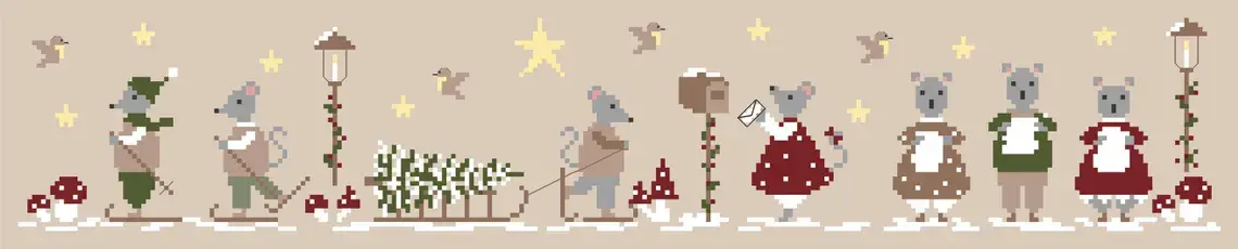 sur une toile 12,6 fils (ou aïda 6,3 points) : 41,9 x 7,6 cm