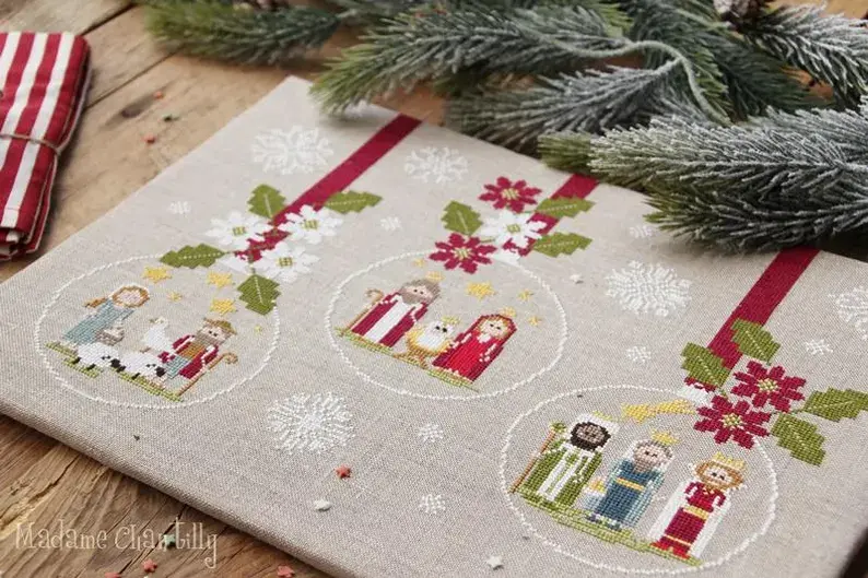 Boules de Noël de la Nativité - Fiche ou Kit de Point de Croix - Madame Chantilly