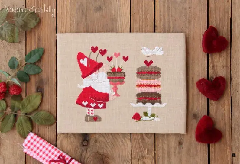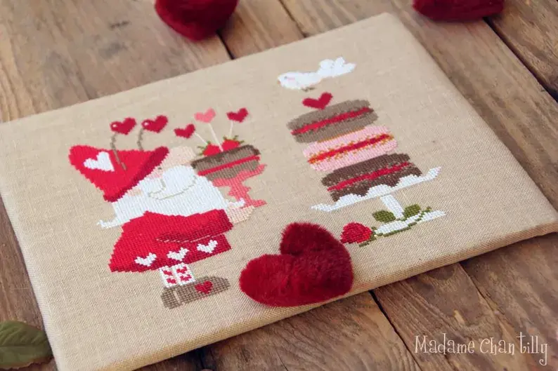 Valentine's day Gnomen - Fiche ou Kit de Point de Croix - Madame Chantilly Nouveau