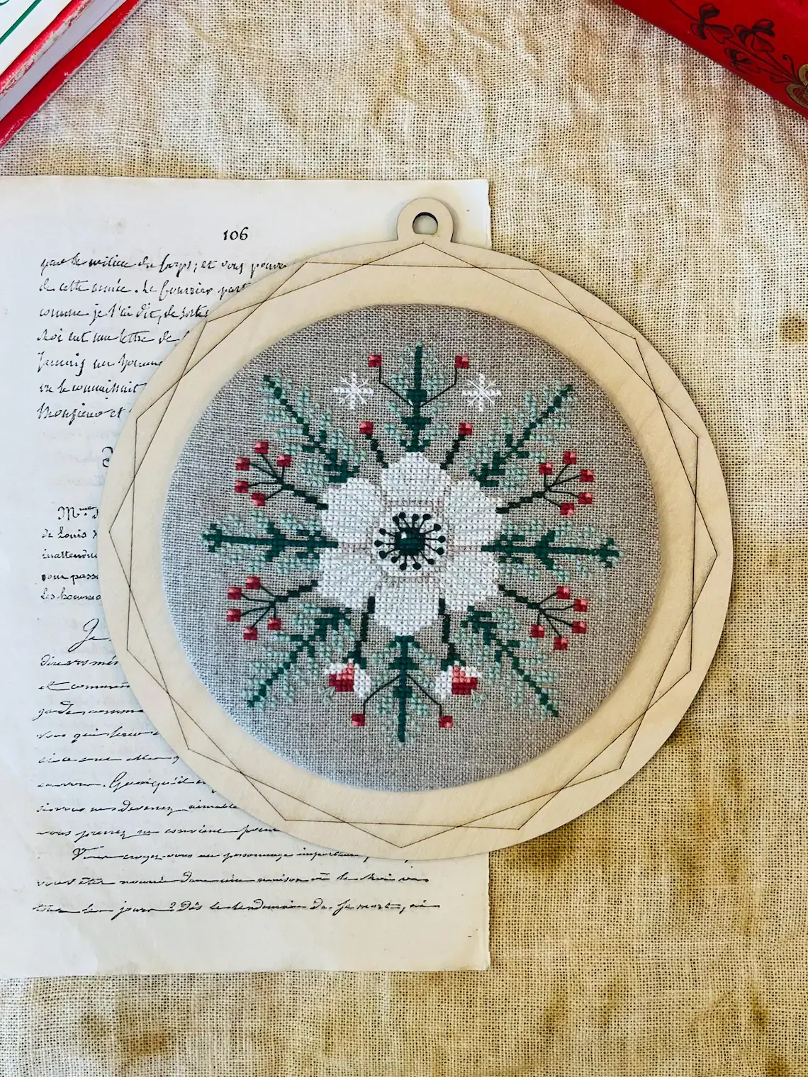 sur une toile 6,3 pts/cm ou 12,6 fils/cm : 11,6 x 11,7 cm